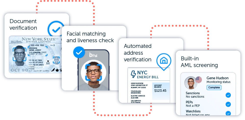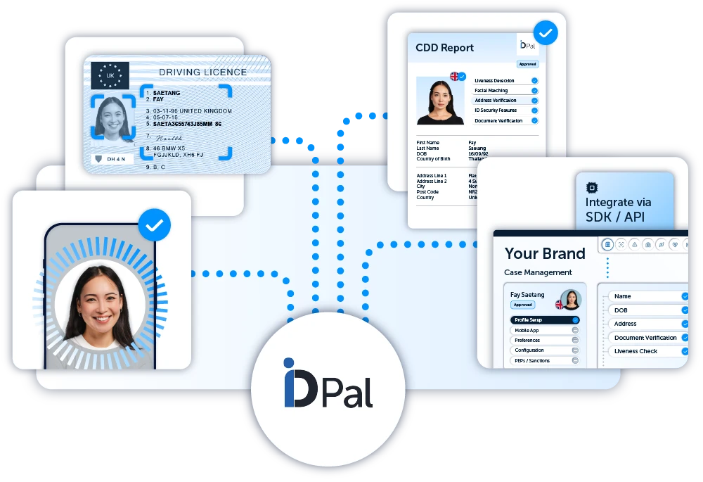 ID-Pal performs instant identity document verification, biometric facial matching, liveness detection and address verification checks.
