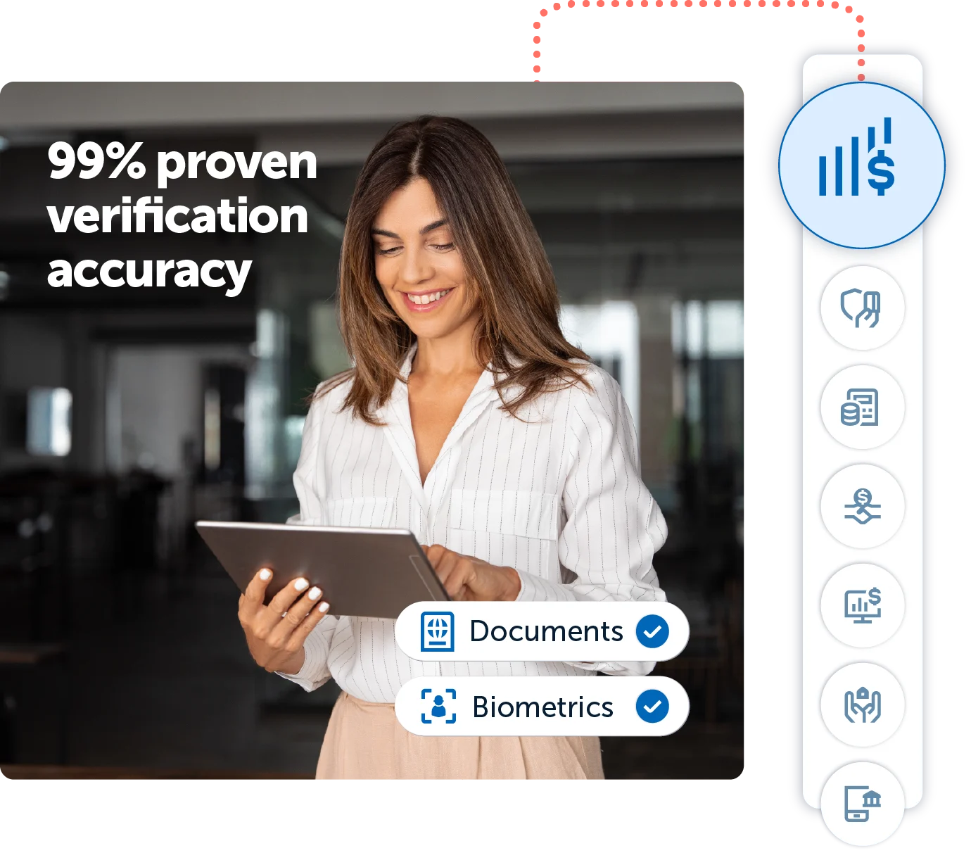 Our Identity Verification solution blends 100% AI-Powered technology with robust compliance to deliver seamless customer onboarding.