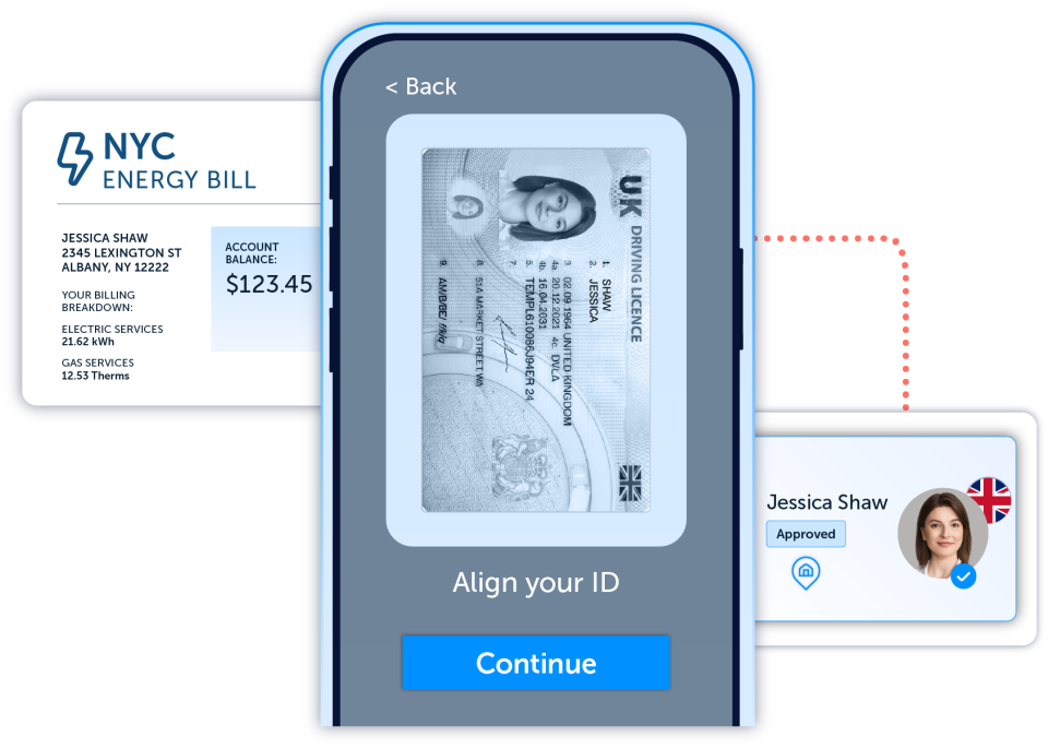 Our solution extracts the name and address shown in the documents to verify an identity and address. We prove the individual currently lives there.
